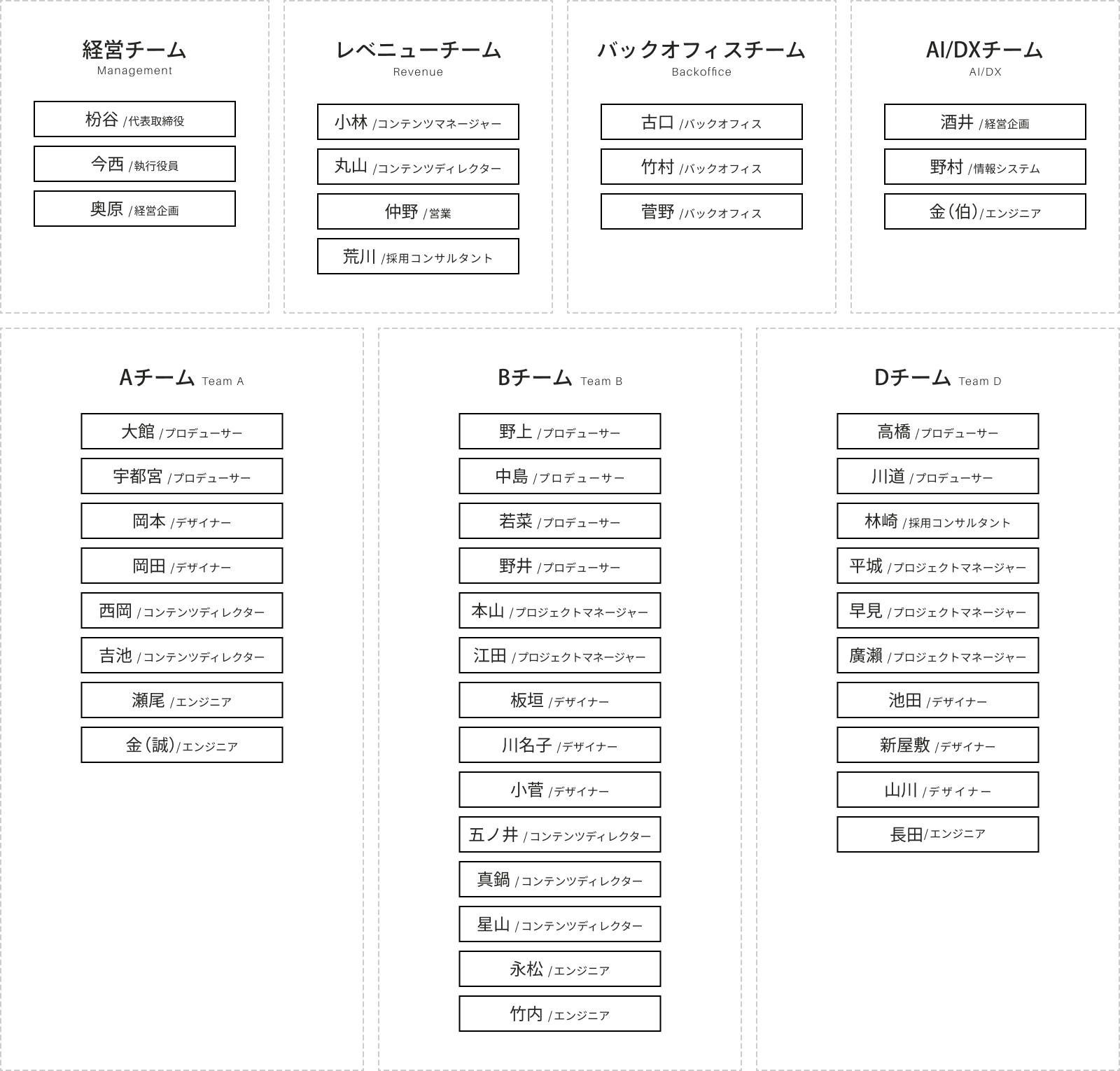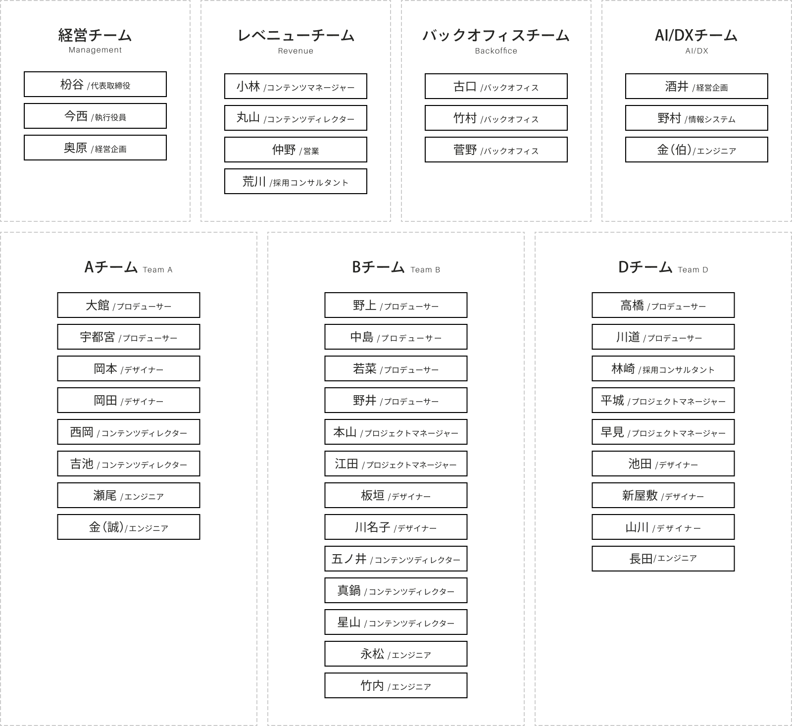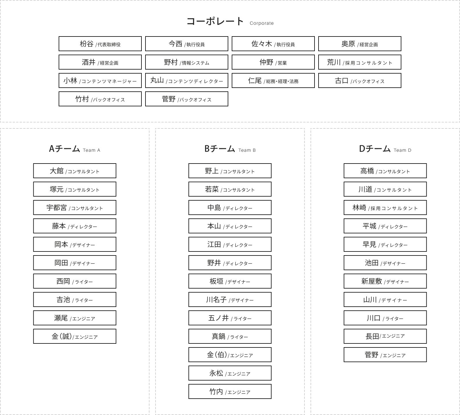 ベイジには、ウェブサイトの戦略を考え、制作し、運用するのに必要なメンバーが、社内にすべて揃っています。各職種が協働するチーム制を採用しており、独自のメソッドとワークフローを活用しながら、一つのチームで継続的なご支援ができる体制です。