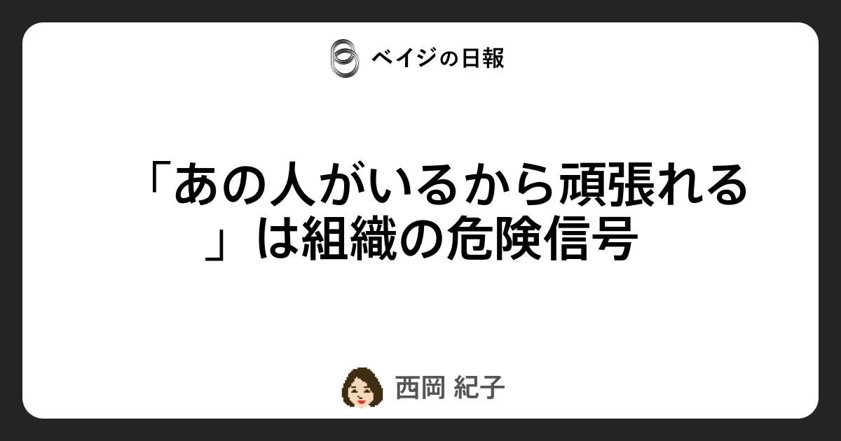 「あの人がいるから頑張れる」は組織の危険信号