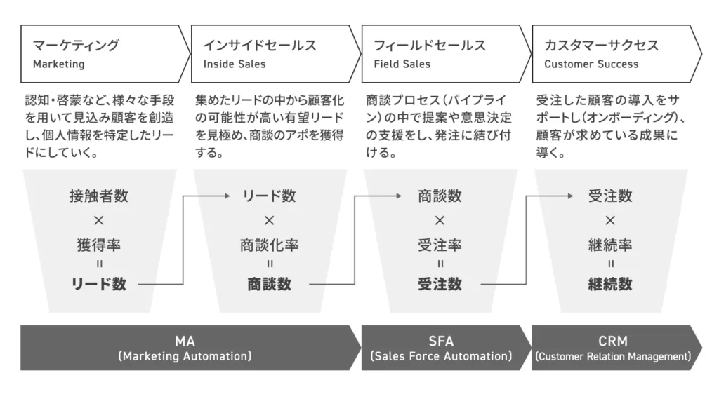 そこで、マーケティングを最初のプロセスに据えて、セールスやカスタマーサクセスといった役割をマーケティングとは別に切り出す、The Modelのような考え方になっていくわけです。