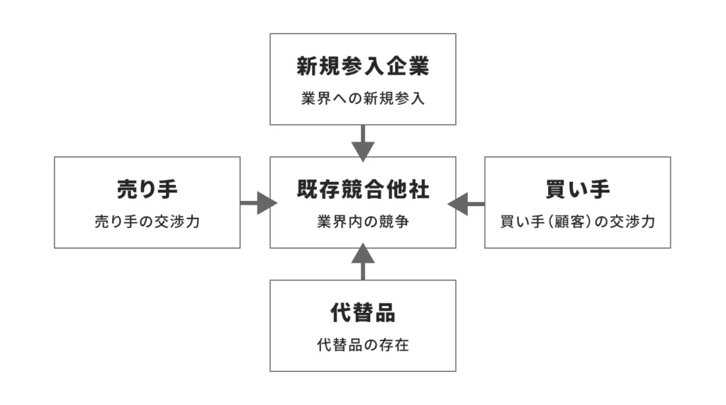 ポーターは企業の基本的な戦略は「コストリーダーシップ戦略」「差別化戦略」「集中戦略」の3つに集約されるとし、この理論をベースに、競争構造を分析するファイブフォースというフレームワークも生まれました。