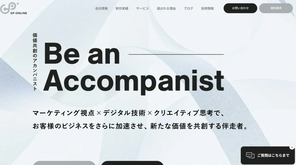 株式会社ジーピーオンラインは、マーケティング視点×デジタル技術×クリエイティブ思考を軸に、伴走型の支援を行う制作会社です。採用マーケティングと採用ブランディングの両面から採用サイトの戦略的な活用を支援してくれます。