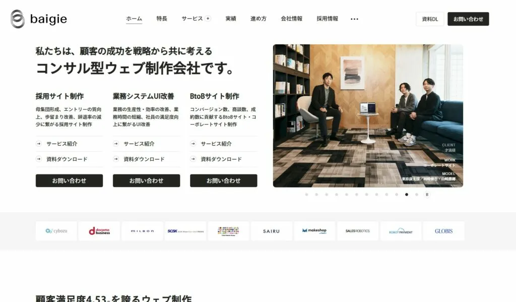 株式会社ベイジは、採用サイト制作に強みを持つコンサルタント型の制作会社です。マーケティングのノウハウを採用支援に応用し、戦略設計 、サイト制作 、公開後の運用・保守・改善まで一貫した伴走型での支援が可能。単に採用サイトを制作するだけではなく、採用戦略にも精通しています。また独自の市場調査も行っており、採用に関する豊富なデータを有しています。IT系企業の採用サイトの制作実績が多いですが、それ以外にも、幅広い業種の実績を持っています。