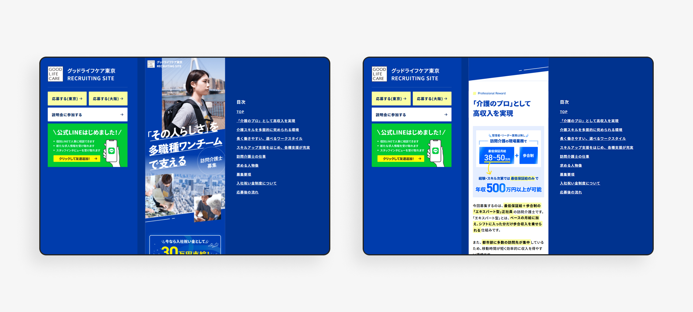 グッドライフケア東京 採用ランディングページ